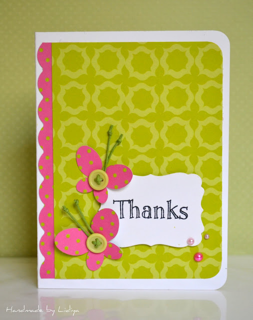 Patterned papers: Pink Paislee - Butterfly Garden (Butterfly Wings, Flower Blooms, Dragonflies), Green Cardstock.